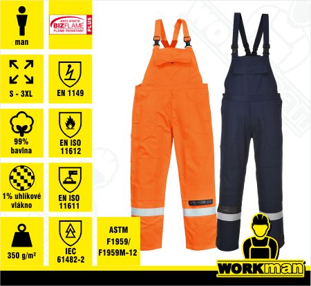 4. Antistatické nehorľavé nohavice FR27 s náprsenkou Portwest