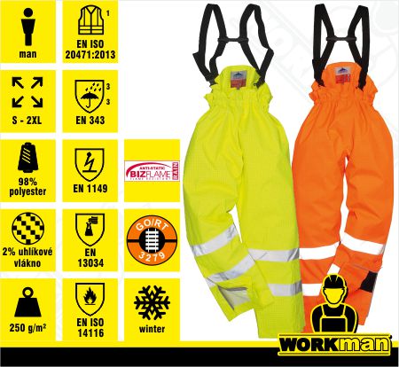 Antistatické nehorľavé nohavice FR27 s náprsenkou Portwest