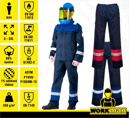 + nehorľavý odev s antistatickou úpravou pre prostredie, ktoré to vyžaduje