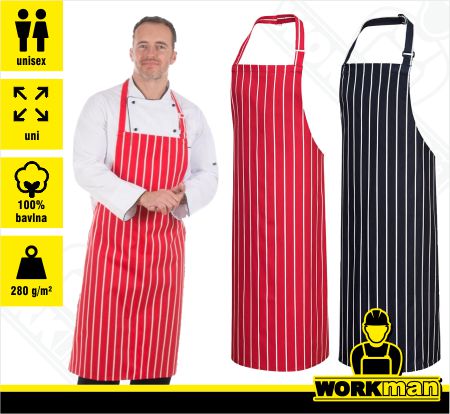 Popis: Profesionálna a štýlová mäsiarska zástera vyrobená z odolnej bavlny. Jednoduché šnurovanie.