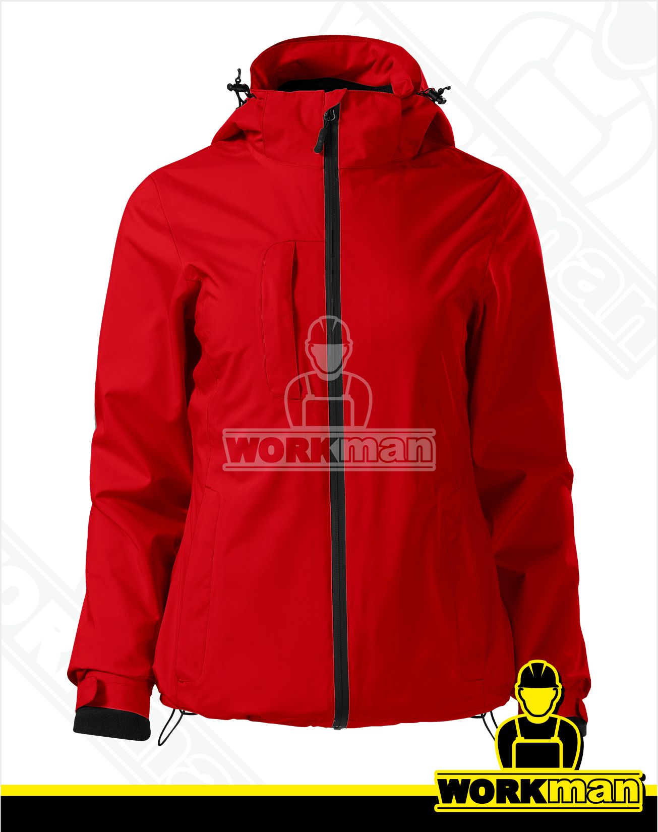 Vrchná bunda: Stojáčik s odnímateľnou kapucňou s vystuženým šiltom. Podlepené švy. Vodeodolný zips zakončený krytkou brady. 2 predné kryté vrecká na zips v členiacich švoch. 1 náprsné kryté vrecko na zips. Spodný lem a kapucňa k stiahnutiu elastickou šňúrkou. Spodný lem rukávov nastaviteľný suchým zipsom.