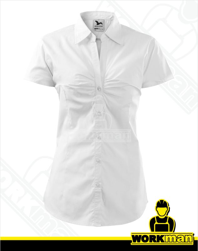 Kompletné špecifikácie Dámska košeľa CHIC Malfini Pánsku variantu košele CHIC nájdete TU.   Popis: Dámska blúzka s krátkym rukávom z jemného materiálu tvarovaná pásovými záševkami. V oblasti hrudníka zdobená riasením zvýrazňujúcu dámsku siluetu. S rozhalenkou a dvojdielnym košeľovým golierom. Predné... celý popis