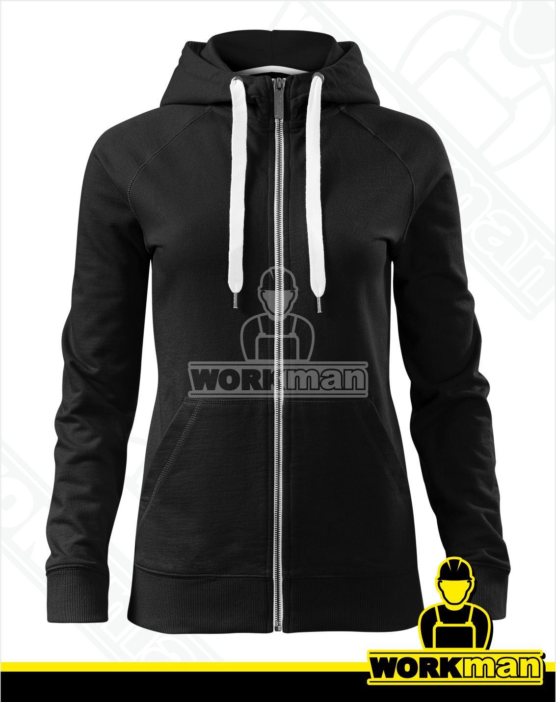 Popis: Celozapínacia dámska mikina s kapucňou priliehavého strihu s kontrastnými prvkami. Kovový zips zdobený Malfini logom v kontrastnej farbe. Kapucňa s podšívkou, na stiahnutie kontrastnou šnúrkou. Raglánové rukávy s ozdobným prešitím. Začistenie priekrčníka kontrastnou páskou. Dolný lem a manžety rukávov z rebrového úpletu 2:2 s prídavkom 5 % elastanu.