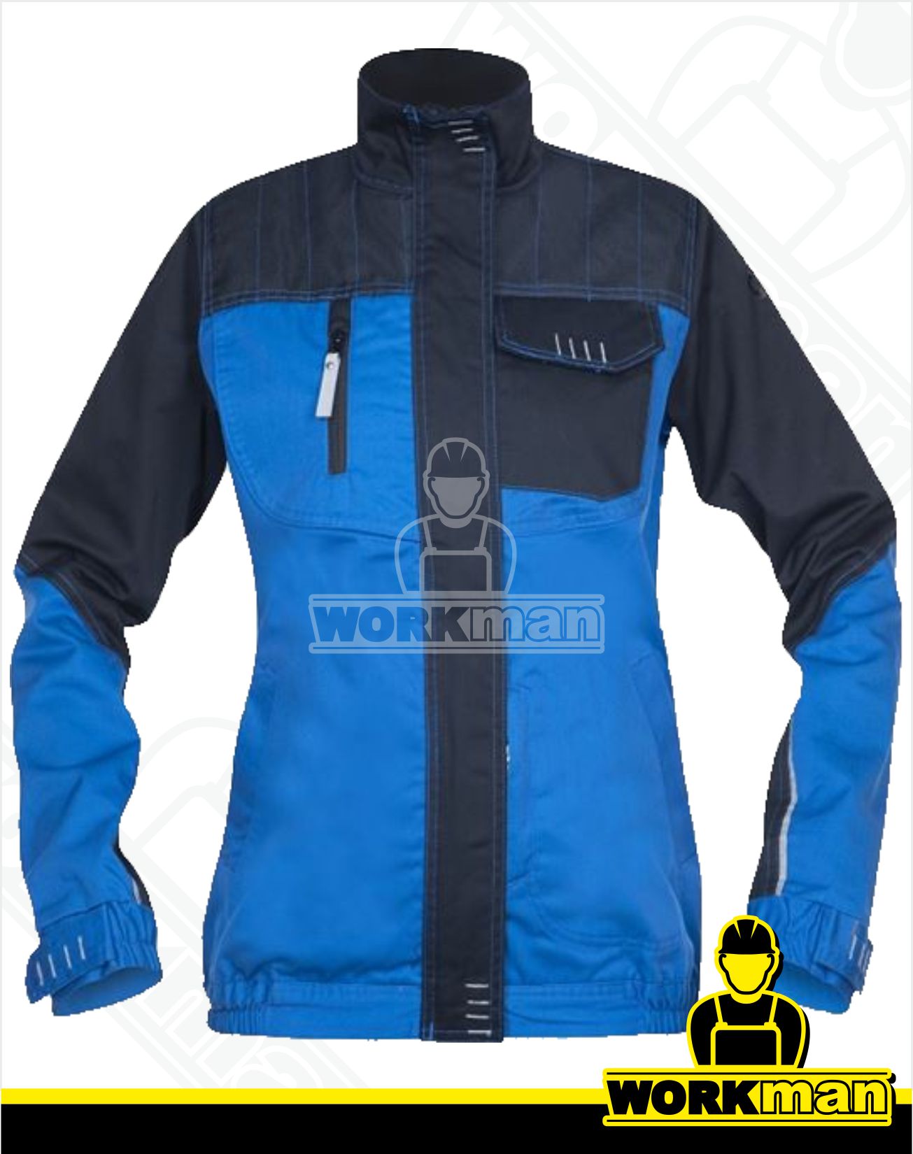 Popis: Dámská montérková blúza v modernom dizajne. Dámsky strih a silueta. Zosilnené sedlo s kontrastným prešitím, 600D polyester Oxford. 2 spodné vrecká. Vrecko na zips pri hlavnom zipse. Nastaviteľná šírka rukávov. Reflexné lemovky.