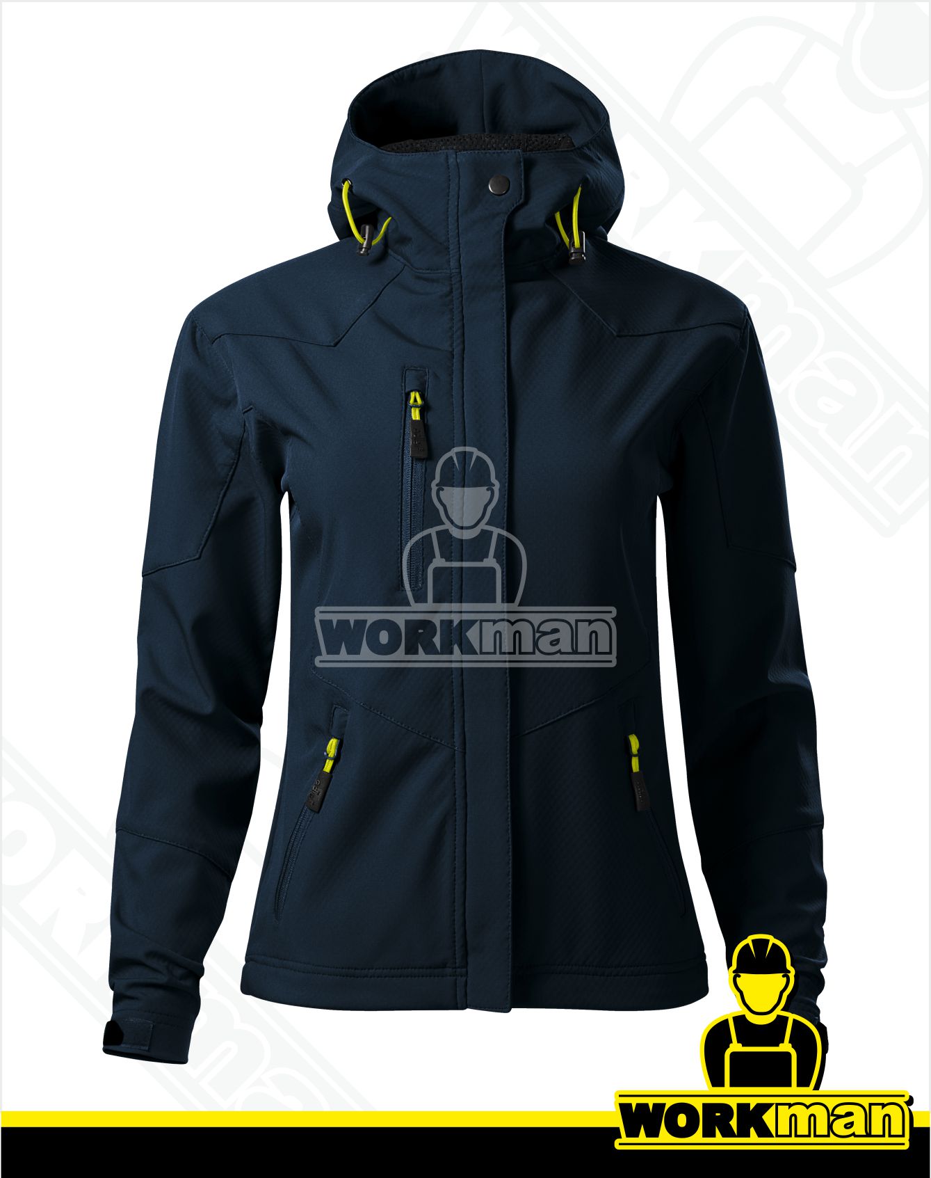 Popis: Dámska softshellová bunda s kontrastnými detailami. Efektná textúra softshellu. Úprava NANO zabraňujúca prieniku vody. 2 predné vrecká a 1 náprsné vrecko na zips. Kapucňa na stiahnutie šnúrkou. Kapucňa a spodný lem rukávou nastaviteľné suchým zipsom. Zúžený strih.