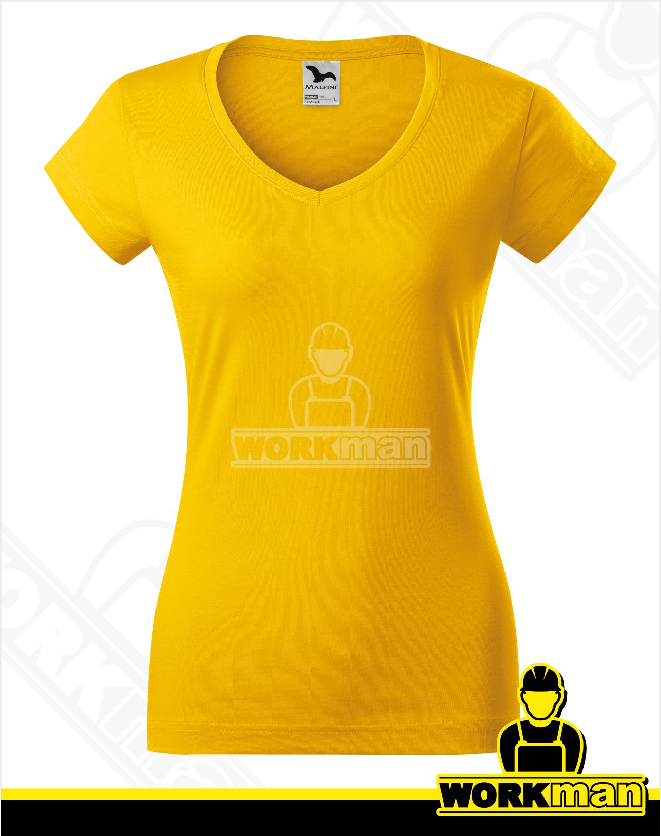 Kompletné špecifikácie Dámske tričko FIT V-NECK Malfini Popis: Kvalitné dámske tričko vyššej gramáže s rukávmi kratšej dĺžky. Zľahka vypasovaný strih s bočnými švami. Prehĺbený výstrih vo tvare V. Úzky lem priekrčníka z povrchového materiálu s 5 % elastanu. Vnútorná časť priekrčníka začistená pásk... celý popis