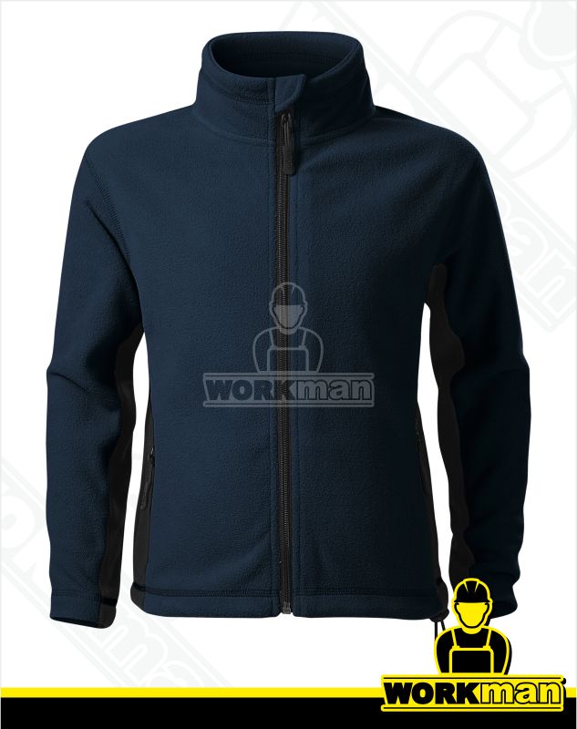 Popis: Detská fleecová bunda s kontrastnými vložkami a detailami. 2 vrecká na zips na prednom diele. Stojačik zakončený krytkou pre ochranu brady. Dekoratívne prešitie. Spodný lem k stiahnutiu elastickou šnúrkou. Antipilngová úprava vonkajšej strany materiálu.
