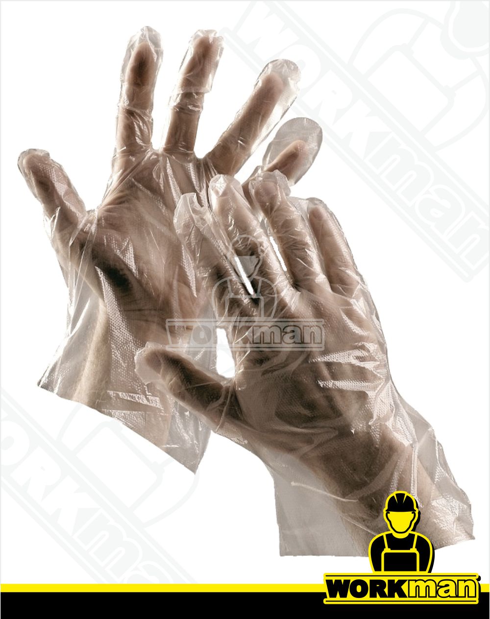 Popis: Jednorazové rukavice z polyetylénovej fólie vhodné pre krátkodobý styk s potravinami.