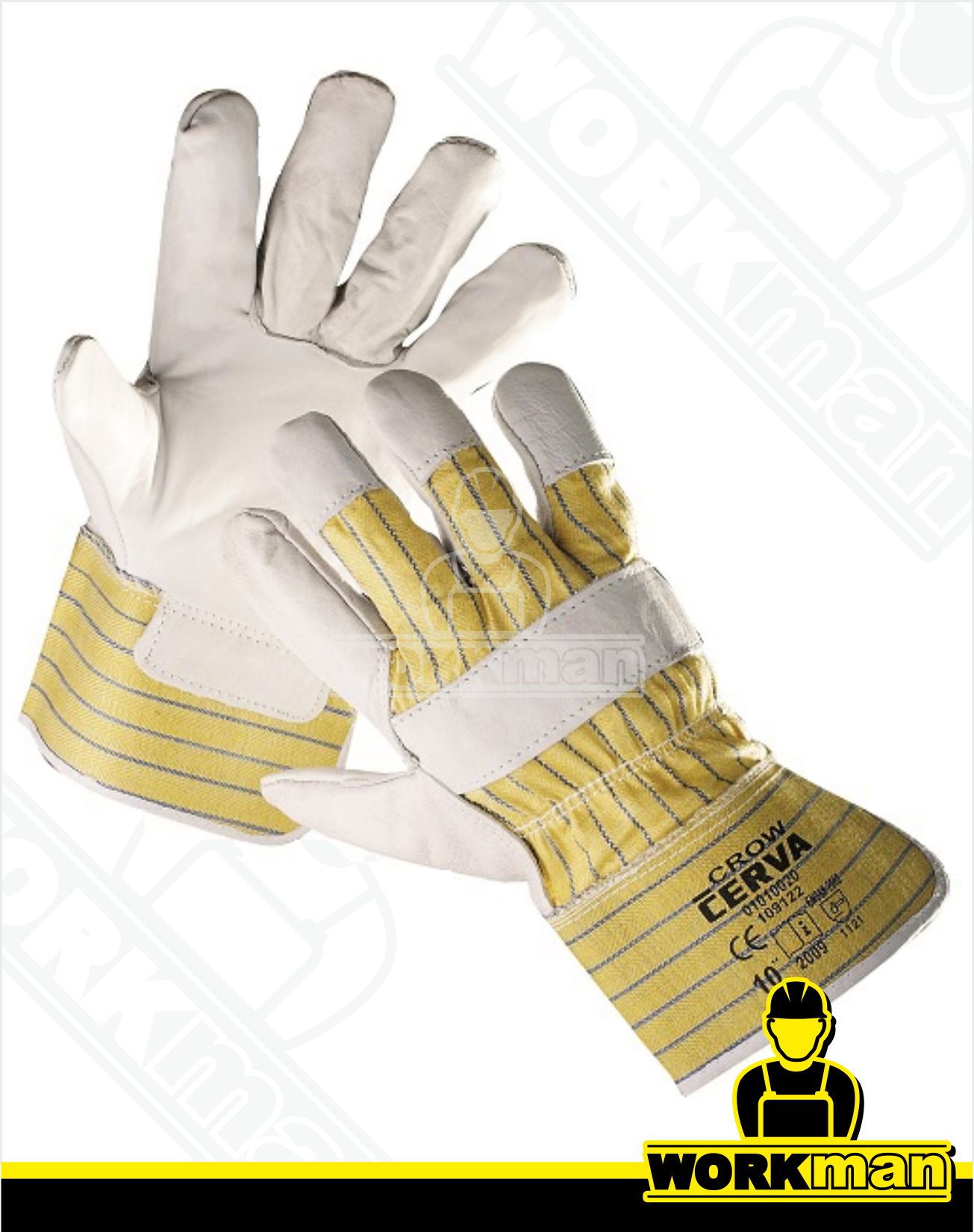 Kompletné špecifikácie Kombinované pracovné rukavice CROW Červa Popis: Kombinované rukavice, dlaň z jemnej lícovej hovädziny, chrbát a manžeta z pruhovanej bavlny, podšívka v dlani. Stupeň ochrany proti prerezaniu 1. Veľkosť: 10, 11 Materál: Dlaň: hovädzia štiepenka. Chrbát a manžeta: bavlnená tkani... celý popis