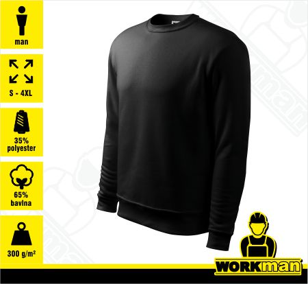 Materál: 65 % bavlna, 35 % PES, Single Jersey, z vnútra počesaná, 300 g/m2