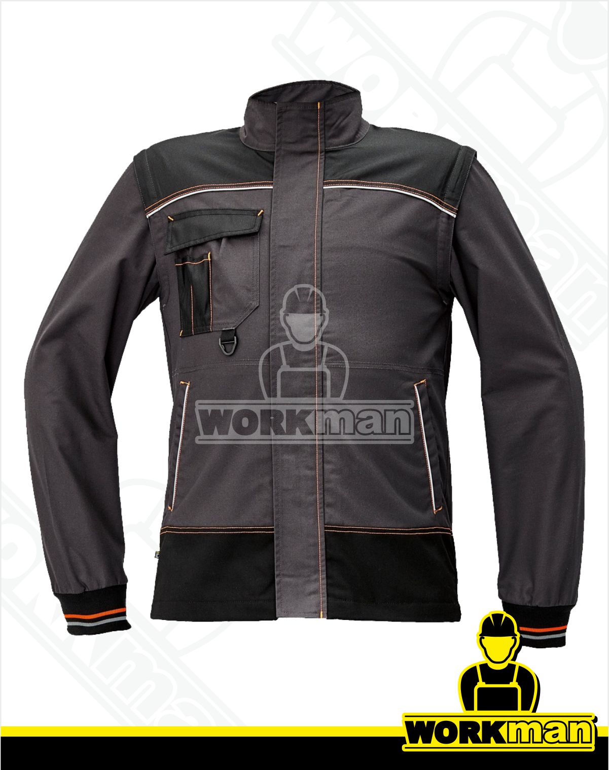Popis: Pánska pracovná bunda moderného strihu so stojačikom. Bunda má odopínatelné rukávy, takže ju je možné použiť aj ako vestu.