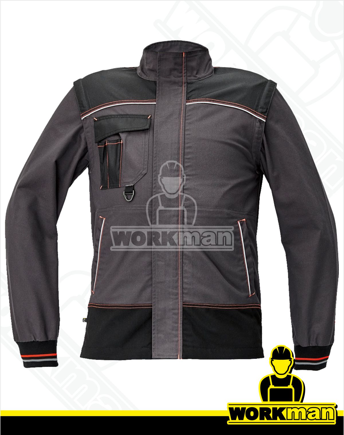 Popis: Pánska pracovná bunda moderného strihu so stojačikom. Bunda má odopínatelné rukávy, takže ju je možné použiť aj ako vestu.