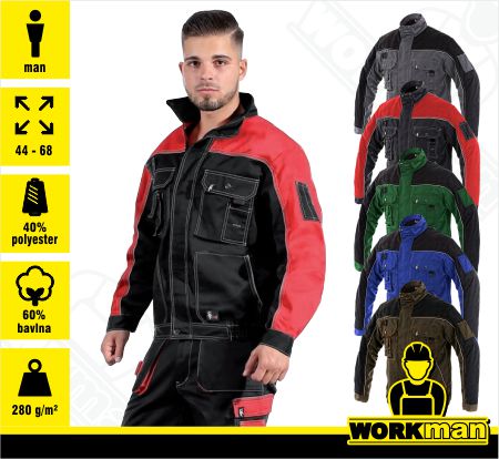 Popis: Pánska montérková blúza, rukávy s nastavitelnou manžetou, na ľavom rukáve vrecko na pero. Kryté zapínanie na zips a na suchý zips. Multifunkčné náprsné vrecká a bočné kapsa. Pas na bokoch do gumy. Reflexní doplnky.