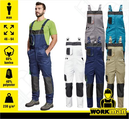 Popis: Pánske pracovné nohavice s náprsenkou z hustej bavlnenej tkaniny