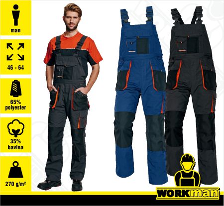 - montérkové nohavice s náprsenkou pohodlného strihu a s vysokou odolnosťou