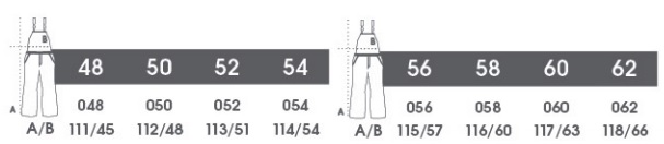 Veľkosť: 48-62 (+velkosť 46 a 64 pri farbe sivá/čierna)