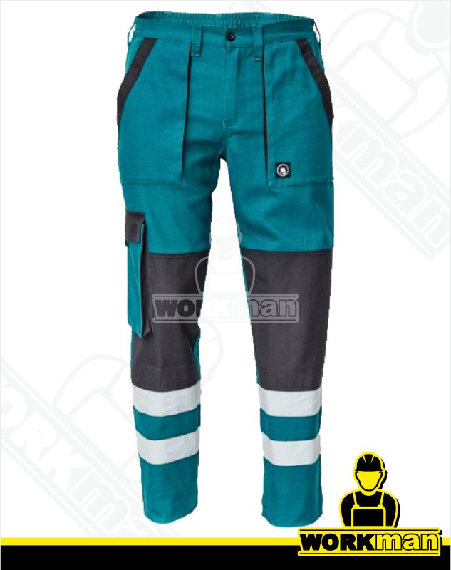 Popis: Pánske pracovné nohavice s elastickým pásom. Inovovaná verzia klasickej kolekcie MAX s pridanými reflexnými pruhmi v spodnej časti rukávov, nohavíc a na zadnom diele bundy. Zaistí maximálnu bezpečnosť pri práci i za zníženej viditeľnosti.