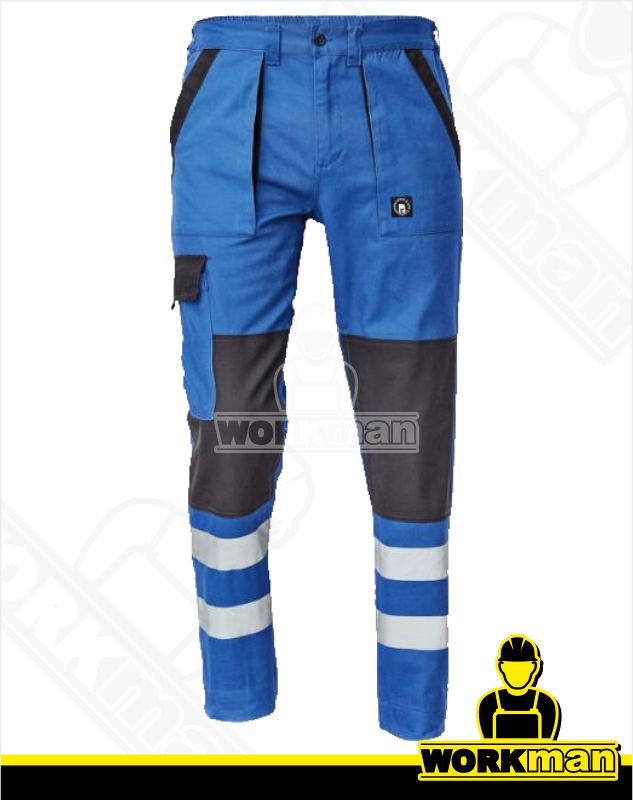 Popis: Pánske pracovné nohavice s elastickým pásom. Inovovaná verzia klasickej kolekcie MAX s pridanými reflexnými pruhmi v spodnej časti rukávov, nohavíc a na zadnom diele bundy. Zaistí maximálnu bezpečnosť pri práci i za zníženej viditeľnosti.