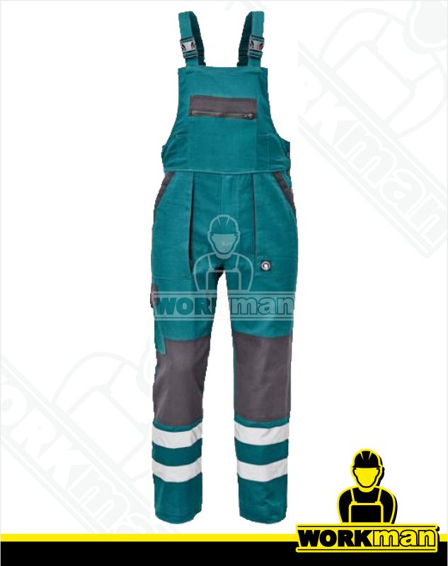 Popis: Pánske pracovné nohavice s náprsenkou a elastickým pásom. Inovovaná verzia klasickej kolekcie MAX s pridanými reflexnými pruhmi v spodnej časti rukávov, nohavíc a na zadnom diele bundy. Zaistí maximálnu bezpečnosť pri práci i za zníženej viditeľnosti.