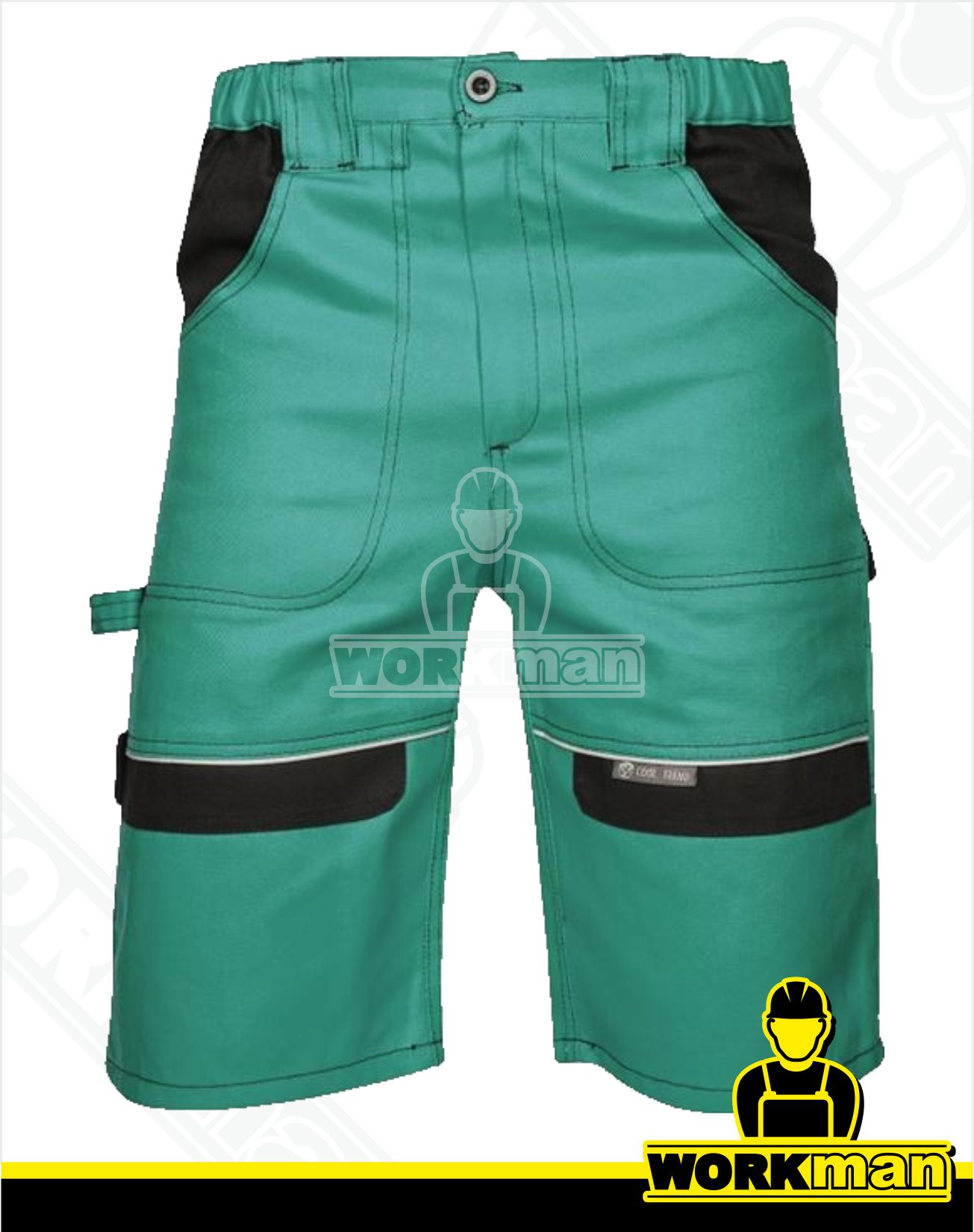 Popis: Montérkové šortky. Vychádzajú zo strihu montérkových nohavíc do pása COOL TREND. Pohodlná dĺžka nad kolená. Silné pútka pre dobré usadenie opaska. S textilným opaskom s plastovou sponou. Vzadu sedlo a dve vrecká. Bočné multifunkčné vrecká na nohaviciach. S reflexnými doplnkami.