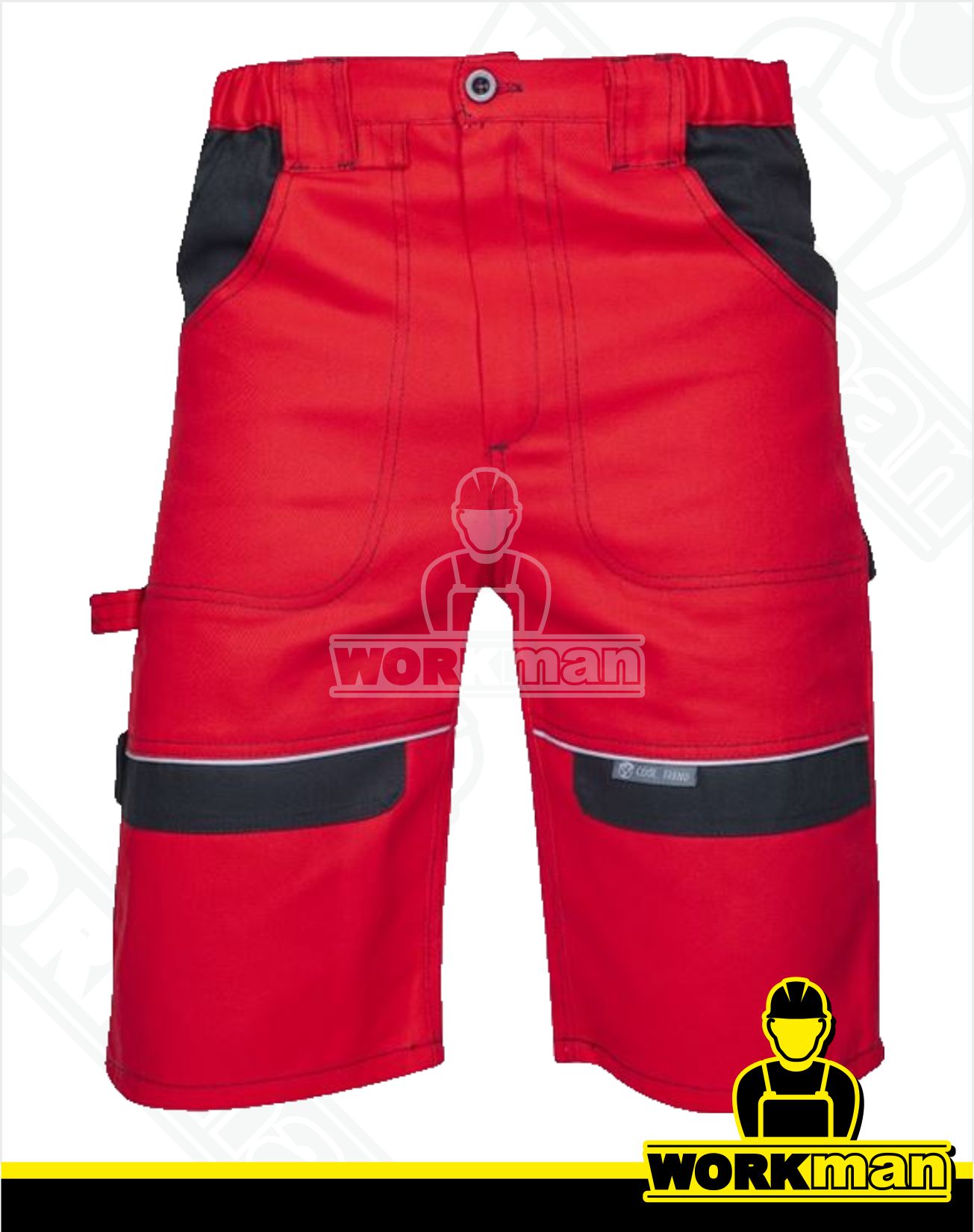 Popis: Montérkové šortky. Vychádzajú zo strihu montérkových nohavíc do pása COOL TREND. Pohodlná dĺžka nad kolená. Silné pútka pre dobré usadenie opaska. S textilným opaskom s plastovou sponou. Vzadu sedlo a dve vrecká. Bočné multifunkčné vrecká na nohaviciach. S reflexnými doplnkami.