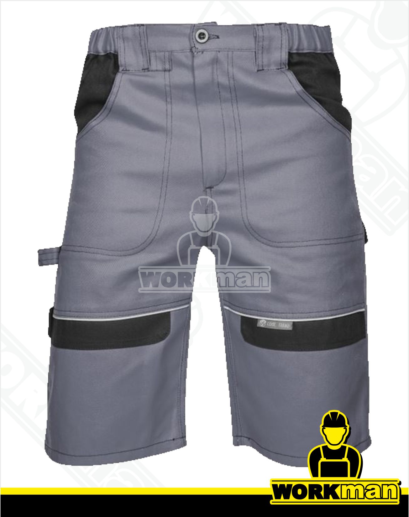 Popis: Montérkové šortky. Vychádzajú zo strihu montérkových nohavíc do pása COOL TREND. Pohodlná dĺžka nad kolená. Silné pútka pre dobré usadenie opaska. S textilným opaskom s plastovou sponou. Vzadu sedlo a dve vrecká. Bočné multifunkčné vrecká na nohaviciach. S reflexnými doplnkami.