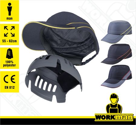 Popis: Nárazuodolná šiltovka - baseball štýl. Výrazne odvetraná. Polyester a vrchná časť je sieťovinová textília. Vystlaná podšívkou z polyetylénu a komfortným materiálom EVA, ktorý zabezpečuje pohlcovanie nárazov. Nastavenie veľkosti 55 až 62 cm pomocou spony.