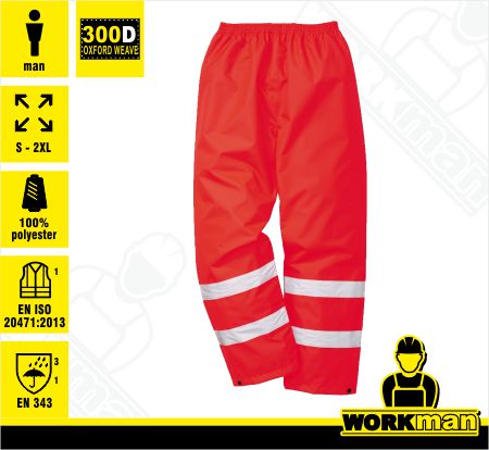 Nepremokavé reflexné nohavice Hi-vis TRAFFIC RED Portwest .Skladom21,32 EUR/ ks17,33 EUR bez DPH