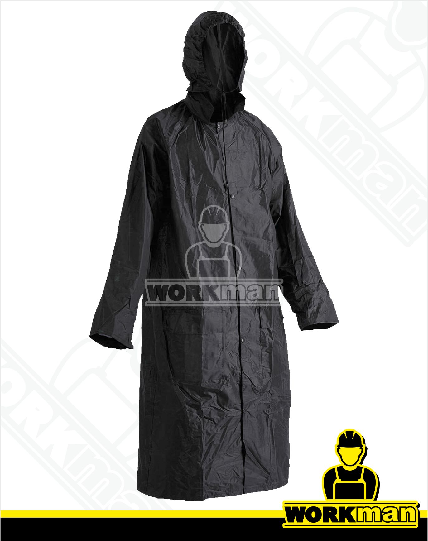 Popis: Ochranný nepremokavý 3/4 plášť s kapucňou. Plášť má dve predné vrecká kryty légou proti vniknutiu vody do vreciek. Na chrbte a v podpazuší má ventilačný sieťky na odvetrávanie. Rukávy majú vnútornú manžetu do gumy. Plášť je vyrobený z nepremokavého materiálu, všetky švy sú prelepené. V praktickom balení.