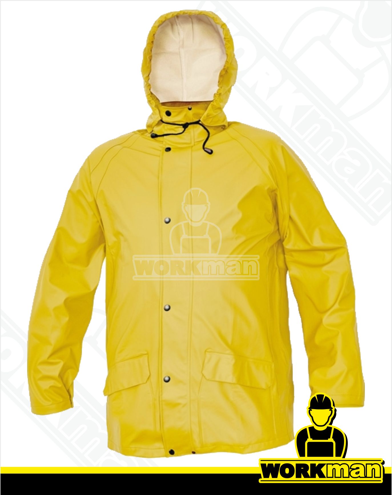 Popis: Nepremokavý 3 plášť s kapucňou v golieri, dĺžka 120 cm, vodný stĺpec 2000 mm. Kryté zapínanie zipsu a prekryté vrecká. Ľahký, nešustivý, flexibilný materiál, príjemný na dotyk.