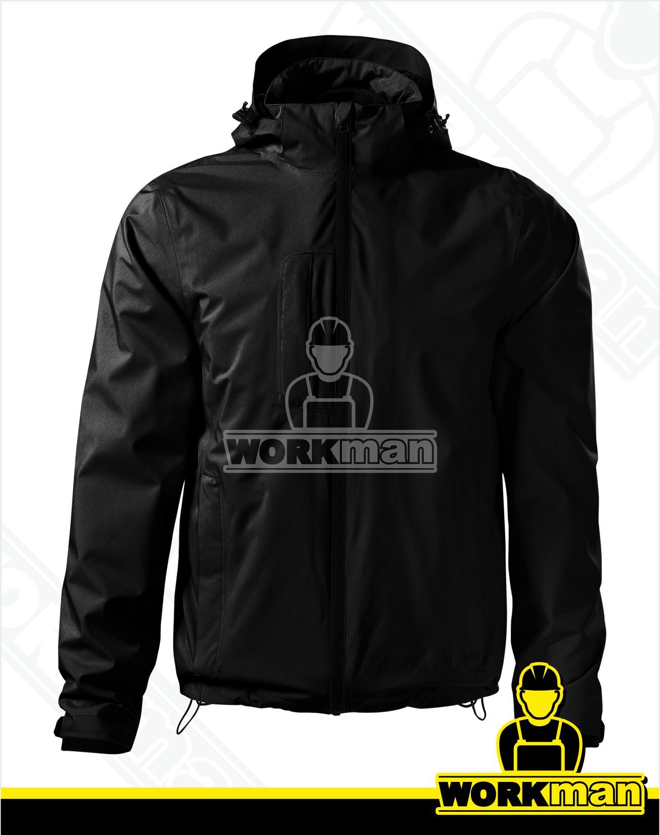 Vrchná bunda: Stojáčik s odnímateľnou kapucňou s vystuženým šiltom. Podlepené švy. Vodeodolný zips zakončený krytkou brady. 2 predné kryté vrecká na zips v členiacich švoch. 1 náprsné kryté vrecko na zips. Spodný lem a kapucňa k stiahnutiu elastickou šňúrkou. Spodný lem rukávov nastaviteľný suchým zipsom.