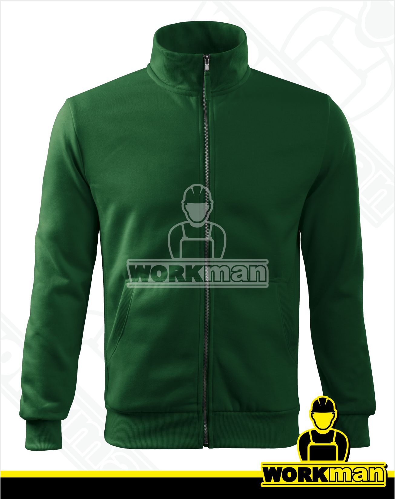 Popis: Kvalitná štýlová mikina s golierom z rebrového úpletu. Celozapínacia. Hlavicový rukáv. Vnútorná strana počesaná. Bočné diely, spodný lem, manžety rukávov a lemy vreciek z rebrového úpletu. Dve predné vrecká.