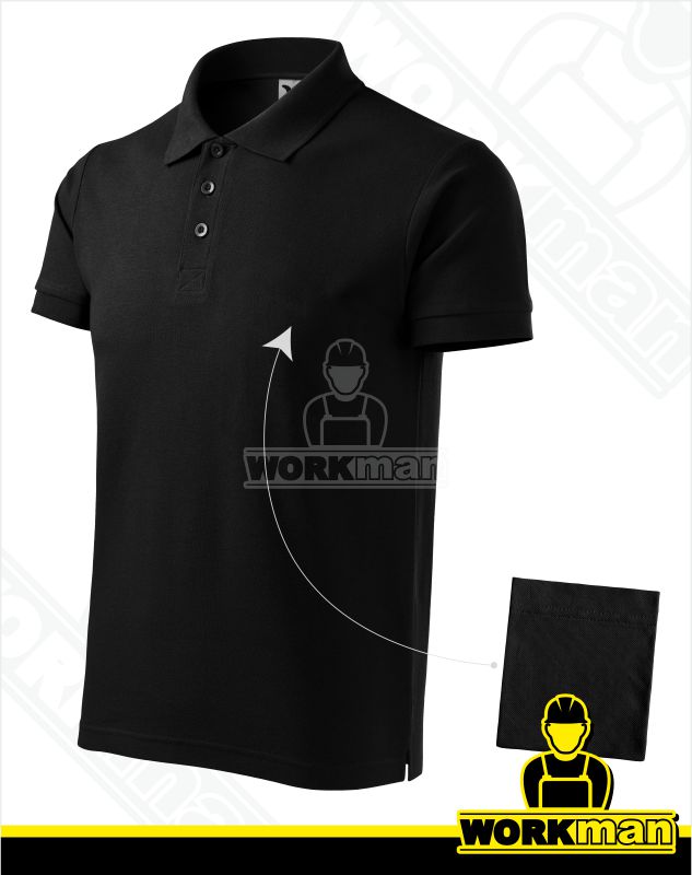 Popis: Pánska polokošeľa strednej gramáže. Strih s rozparkami v bočnom šve. Golierik a lemy rukávov z rebrového úpletu 1:1. Léga s 3 gombíčkami vo farbe materiálu. Vnútorný priekrčník začistený páskou z povrchového materiálu. Spevnenie ramenných švov páskou. Samostatné vrecko pre jednoduchší branding.