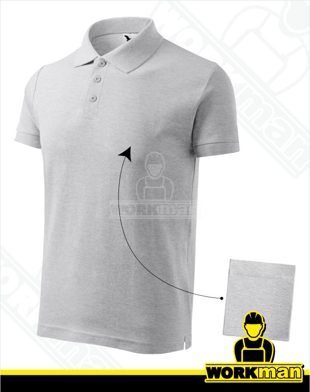 Materál: 100% bavlna, Pique, 170g/m², (farba svetlosivý melír - 97 % bavlna, 3 % viskóza, farba tmavosivý melír - 85 % bavlna, 15 % viskóza)