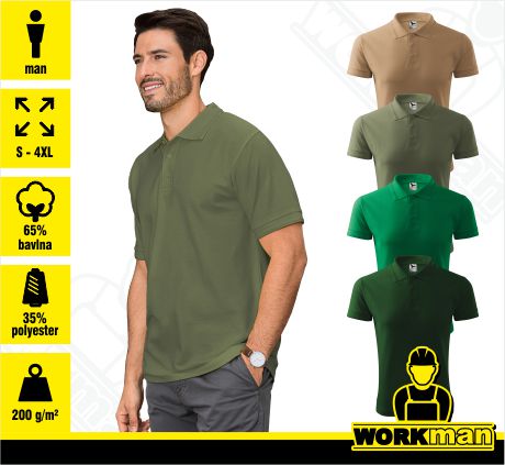 Materál: 65 % bavlna, 35 % polyester, Pique, 200g/m²