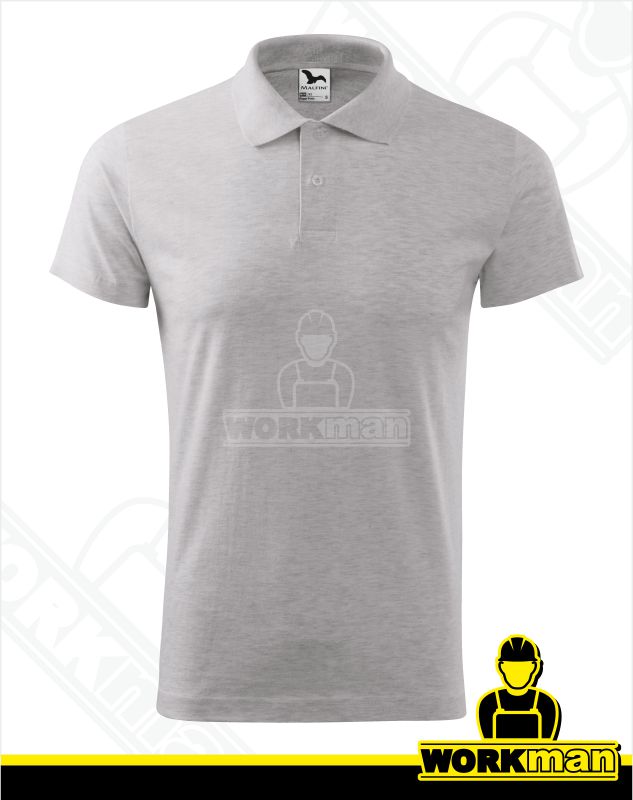 Popis: Polokošeľa s krátkym rukávom z hladkého úpletu. Strih s bočnými švami. Golierik z rebrového úpletu 1:1. Léga s 2 gombíčkami vo farbe materiálu. Vnútorný priekrčník začistený páskou z povrchového materiálu. Spevnenie ramenných švov páskou. Silikónová úprava.