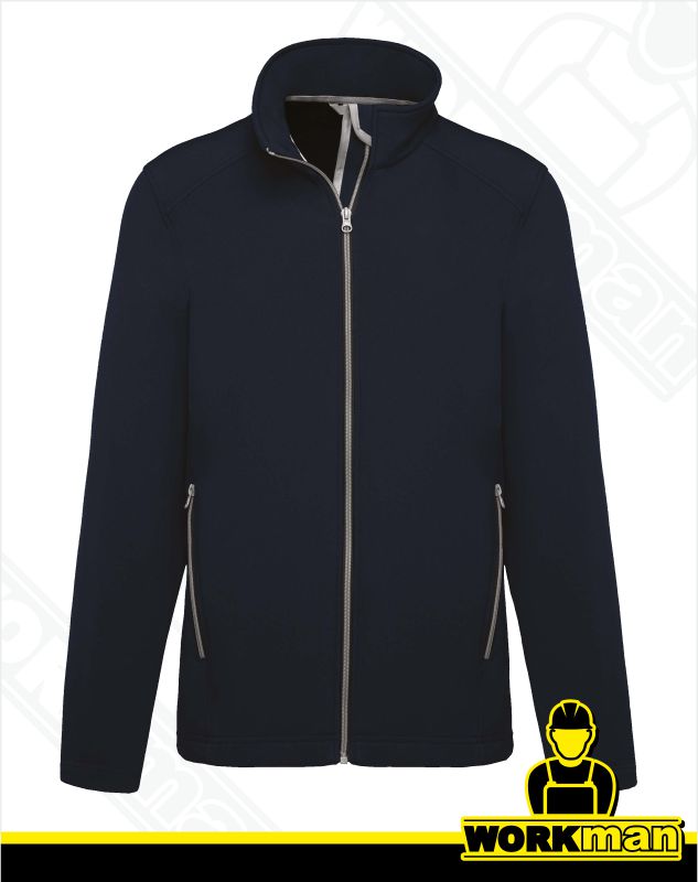 Popis: Pánska softshellová bunda z dvojvrstvového materiálu s impregnáciou proti vlhkosti. Vnútorná podšívka z mikroflísu. Celoprepínací kontrastný značkový zips. 2 bočné vrecká na zips. Ozdobné prešitie na ramenách a bokoch. Spodný lem.