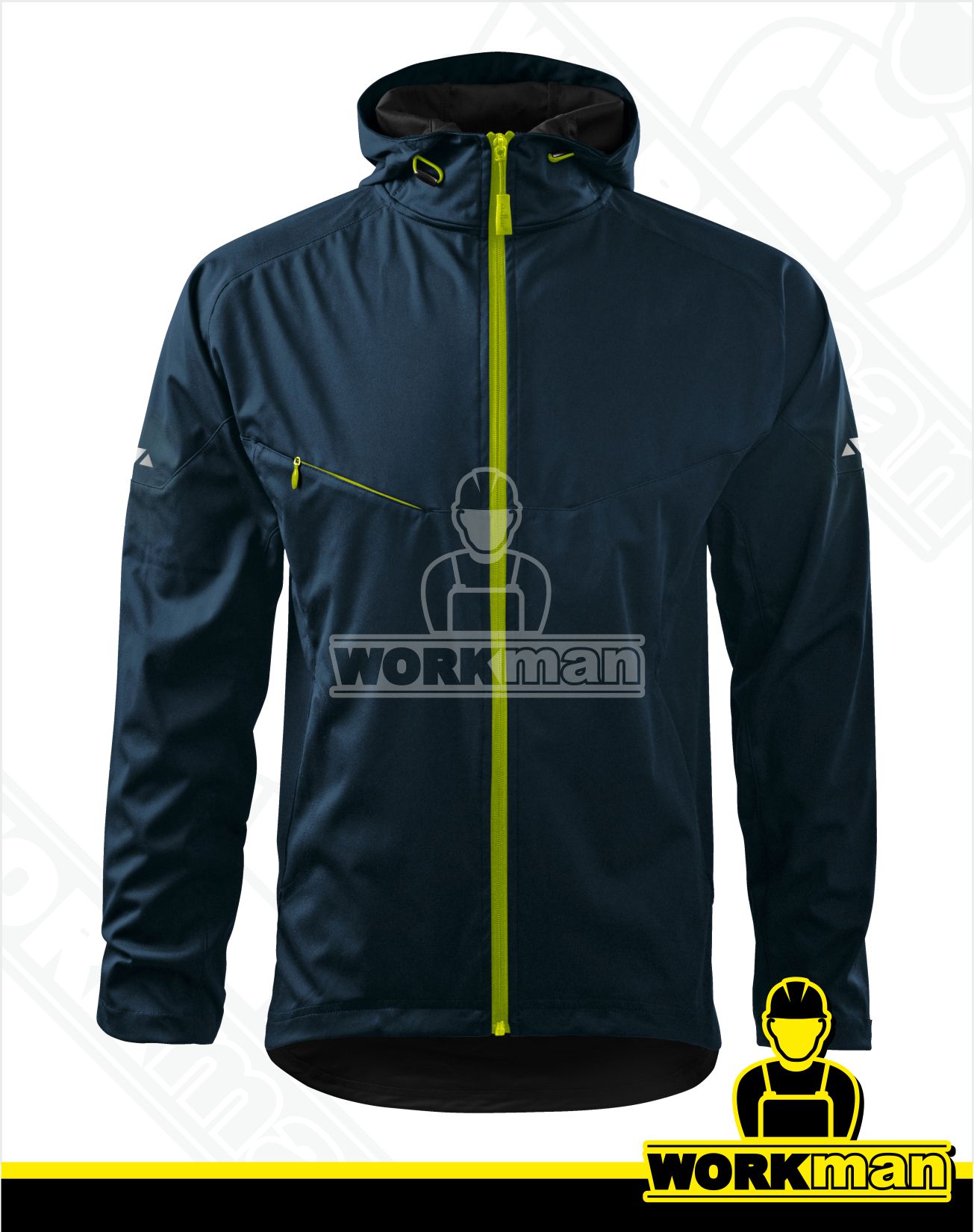 Popis: Ľahká softshellová bunda s kapucňou nastaviteľnou sťahovacou šnúrkou. Odolná proti vetru a dažďu, priedušná. Spodný lem rukávov nastaviteľný suchým zipsom. 2 bočné vrecká na zips. Vonkajšie náprsné vrecko všité do členiaceho švu. Reflexné prvky na rukávoch a kapucni.