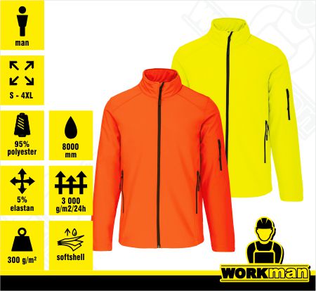 Popis: Ľahká, extra komfortná, priedušná a vodeodolná softshellová bunda. 3 vrstvy spojenej textílie: vonkajšia vodeodolná - 95% Polyester, 5% Elastan, unikátna stredná priedušná membrána, vnútorná vrstva - tepelnoizolačné mikro Polarfleece. Priedušná (prepúšťajúce pot) do 3000 gr / m2 / 24h. Nepremokavá až do 8000 mm vodného stĺpca. Celoprepínací zips. 2 bočné vrecká na zips a 1 vrecko na ľavom rukáve so zipsom.