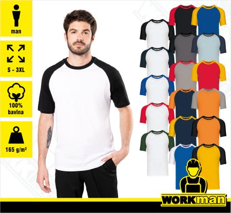 Popis: Pánske tričko, 100% bavlna. Kontrastné raglánové rukávy a rebrovaný úplet na krku.