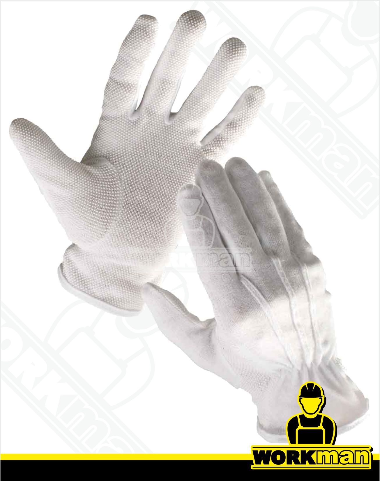 Popis: Rukavice šité z bavlneného úpletu, s PVC terčíkmi v dlani a na prstoch, pružinkou na hornej časti zápästia, bez manžety.