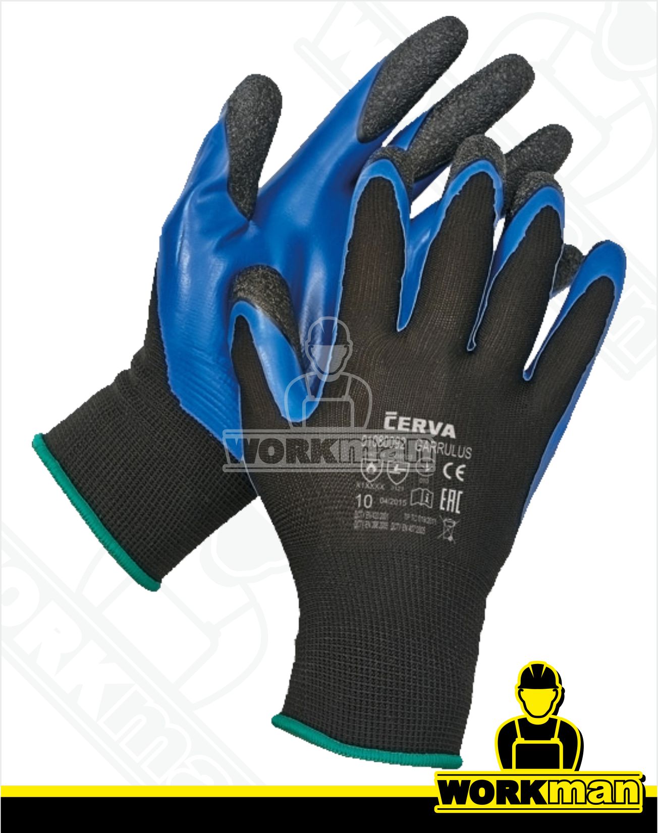 Popis: Pletené bezšvové rukavice z polyesteru, polomáčané v latexe (zdrsnená vrstva na prstoch, hladká v dlani), elastická manžeta. Dlhšia životnosť ,zdvojené máčanie končekov prstov.