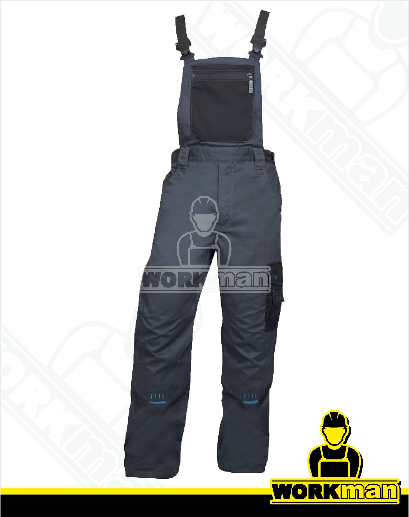 Popis: Športové montérkové nohavice s náprsenkou v predĺženej variante. Zdvojená partia kolien. Multifunkčné bočné vrecko na náradie. Zaujímavo riešené zadné vrecká. Vrecko na zips na náprsenke. Kvalitné elastické traky. Anatomicky tvarované nášivky na uloženie nákolenníkov.