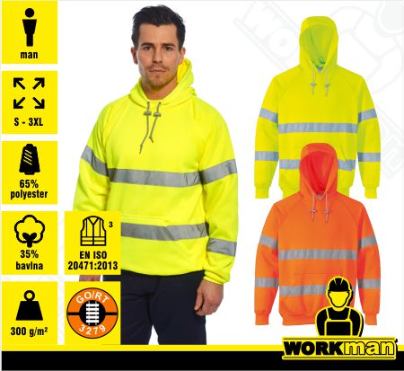 Popis: mikina s reflexnými prvkami podľa EN 471, s kapucňou