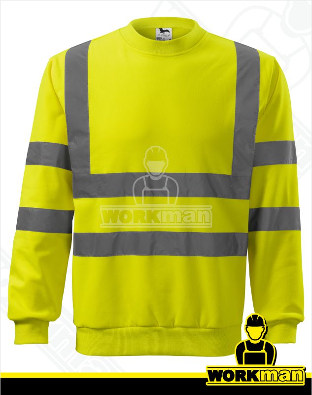Popis: Mikina z fluorescenčného materiálu s hlavicovým rukávom. Vnútorná strana počesaná. Spodný lem, manžety rukávov a lem priekrčníka zakončený lemom z rebrového úpletu 1:1. Použité certifikované retroreflexné pruhy výrobcu 3M. Odev certifikovaný podľa normy EN ISO 20 471:2013 - odevy s vysokou viditeľnosťou (trieda 3). Odev certifikovaný podľa normy EN ISO 13 688:2014 - ochranné odevy.