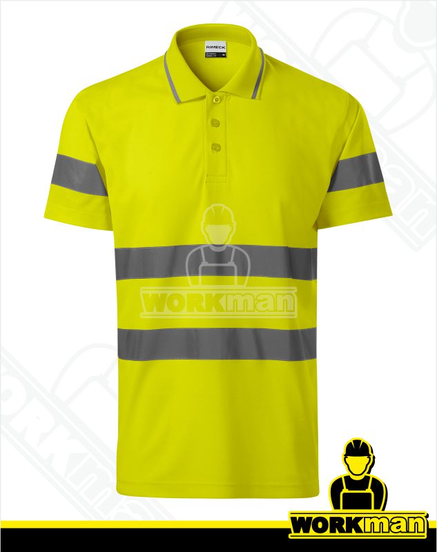 Popis: Unisexová polokošeľa z fluorescenčného materiálu. Strih s bočnými švami. Golier z rebrovej pleteniny s dekorativným pásikom. Léga s 3 gombíčkami vo farbe materiálu. Coužité certifikované retroreflexné pruhy výrobcu 3M.