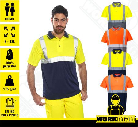 Popis: polokošeľa s krátkym rukávom s reflexnými prvkami podľa EN 471, moderného strihu a dizajnu. Na modrej spodnej časti menej vidno nečistoty. Ideálne do teplého počasia.