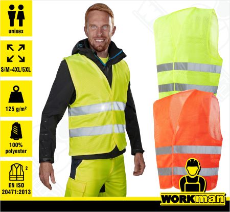 Norma: EN ISO 20471:2013/A1:2016 (trieda 1 pre veľkosť S/M, trieda 2 pro veľkosť L/XL a velikost 2XL/3XL)