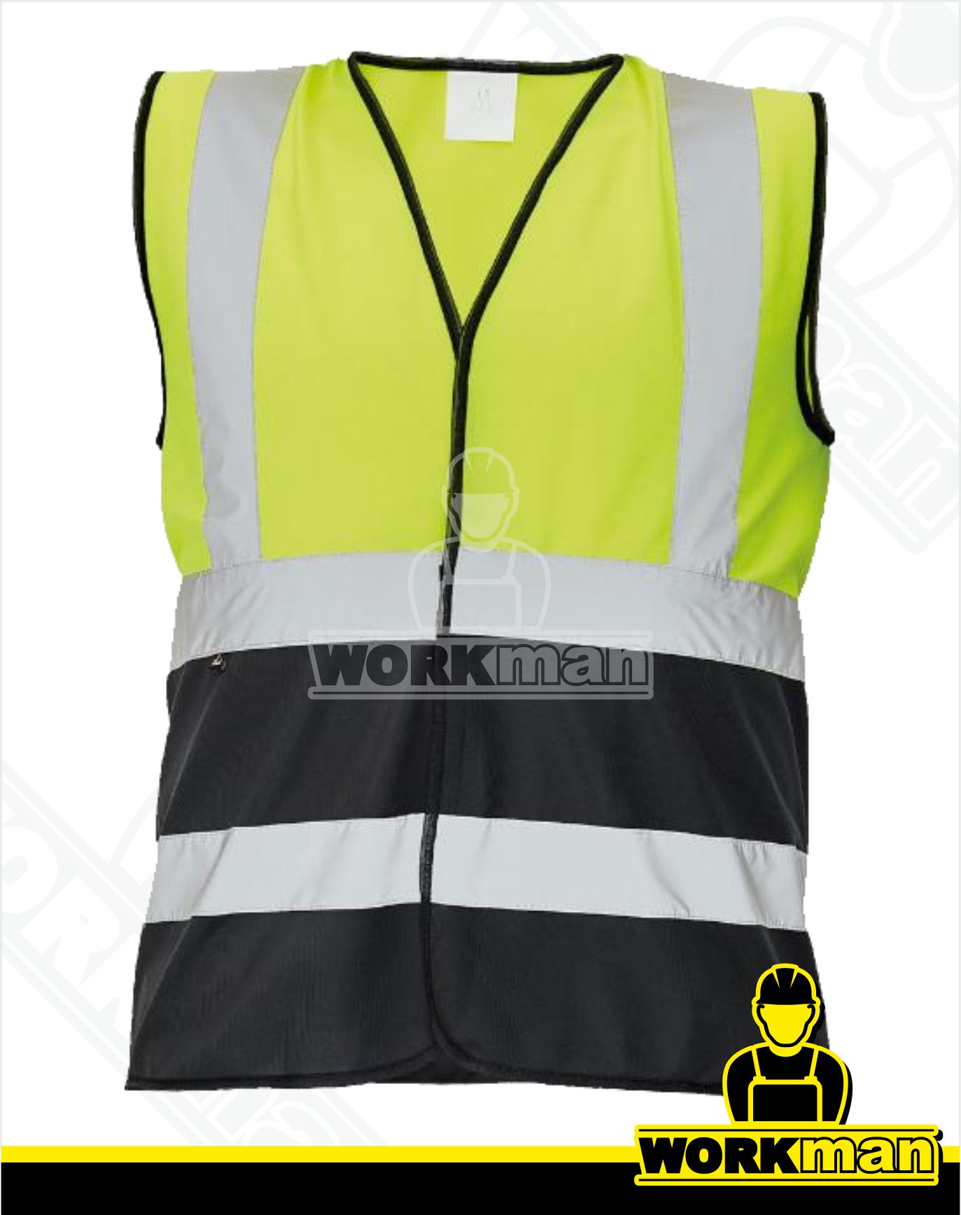 Popis: Reflexná vesta s rôznofarebným prevedením spodnej časti. K noseniu cez vrchný odev. Zapínanie na suchý zips. Je vybavená dvoma horizontálnymi a dvoma vertikálnymi retroreflexnými pásmi.