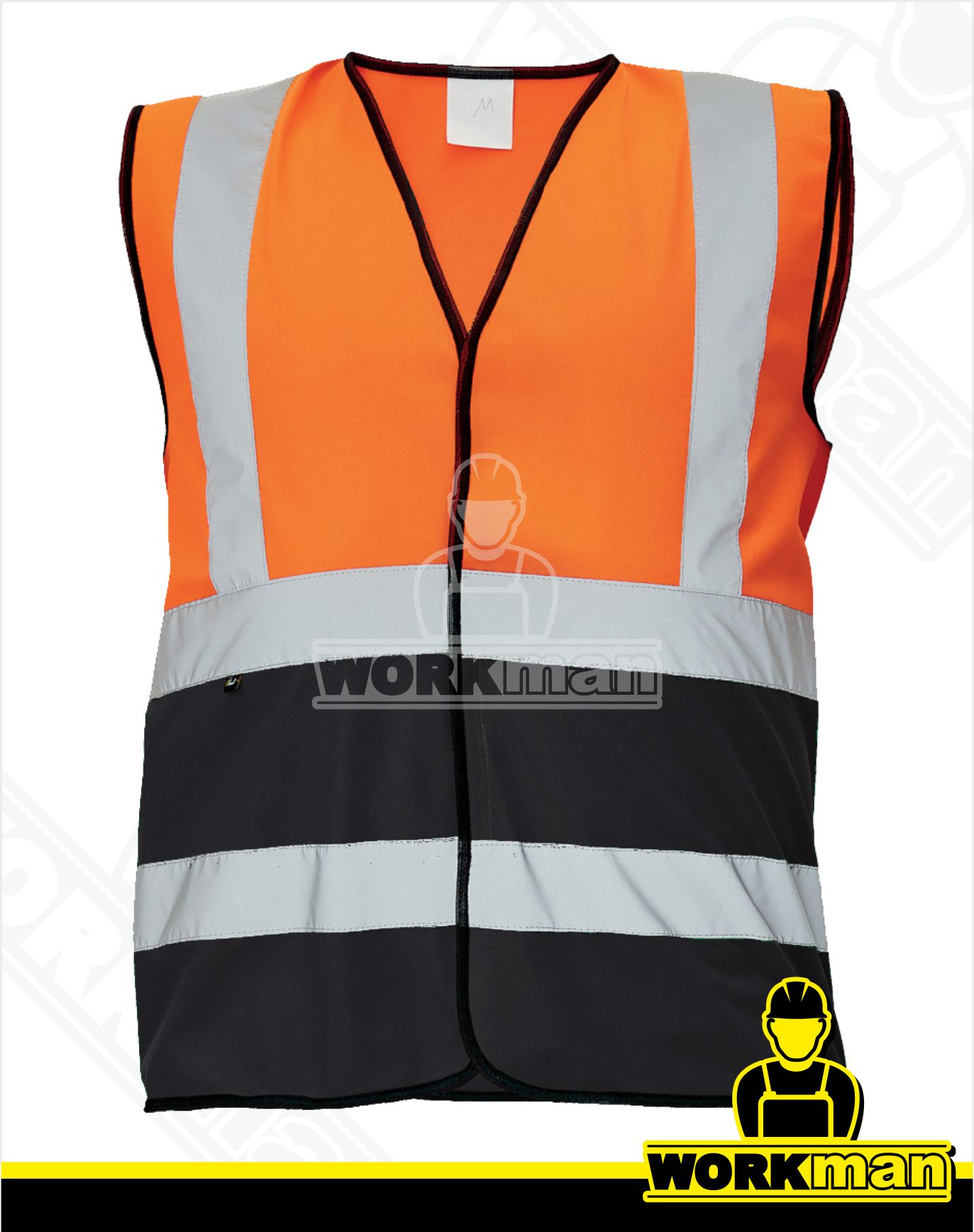 Popis: Reflexná vesta s rôznofarebným prevedením spodnej časti. K noseniu cez vrchný odev. Zapínanie na suchý zips. Je vybavená dvoma horizontálnymi a dvoma vertikálnymi retroreflexnými pásmi.